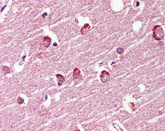 Anti-GPR119 antibody APR16479G IHC of human brain, cortex. |