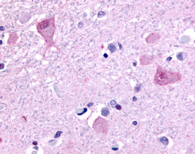 Anti-GPR45 antibody APR12223G IHC of human brain, neurons and glia. |