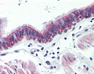 Anti-GPR126 antibody APR14847G IHC of human lung, respiratory epithelium.