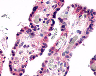 Anti-GPR78 antibody APR16605G IHC of human placenta, villi. |