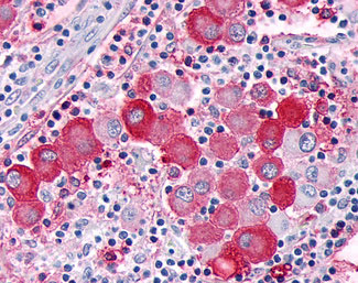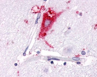 Anti-GPR63 antibody APR12234G IHC of human brain, neurons and glia.