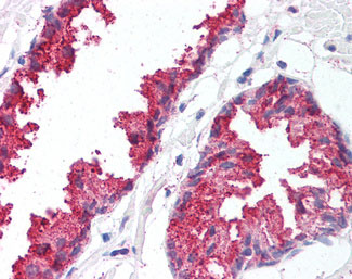 Anti-BACE1 antibody AMM05613G IHC of human prostate. |
