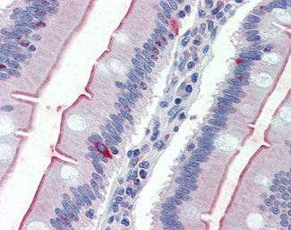 Anti-SLC5A1 / SGLT1 antibody APR10126G IHC of human small intestine. |