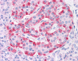 Anti-TM9SF4 antibody IHC of human pancreas islet of Langerhans. |