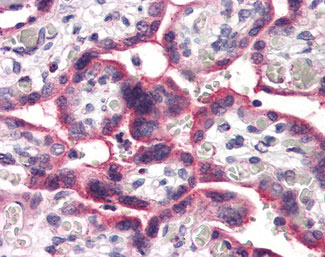 Anti-SLC5A6 antibody APR10134G IHC of human placenta. |