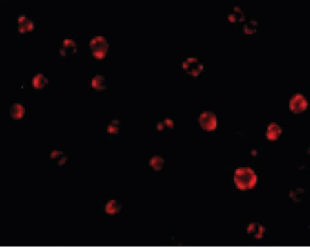 Immunofluorescence of AES in HeLa cells with AES antibody at 20 ug/ml.