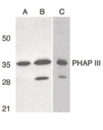 Synthetic peptide corresponding to amino acids close to carboxy terminus of human PHAP III