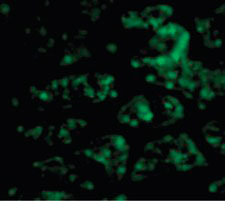 Immunofluorescence of CTRP1 in Human Kidney cells with CTRP1 antibody at 20 ug/ml.
