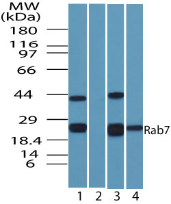 Western blot of human Rab7 in HeLa cell lysate in the 1) absence and 2) presence of immunizing...