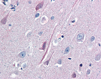 Anti-NTRK2 / TRKB antibody IHC of human brain, cortex. |