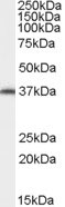 Antibody (0.02 ug/ml) staining of NIH/3T3 cell lysate (35 ug protein in RIPA buffer). |
