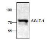 The antibody detects 73 kD SGLT-1 from human samples and in a lesser extent from mouse and rat samples. A ~50 kD cleavage fragment can also be detected in Jurkat cell lysate.