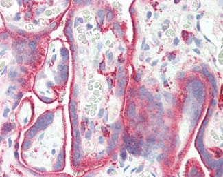 Anti-TGFBR1 antibody IHC of human placenta. |