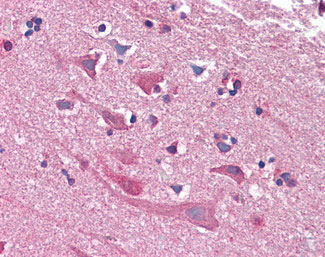 Anti-BAI2 antibody IHC of human brain, cortex.