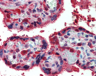 Anti-PRDX1 / Peroxiredoxin 1 antibody IHC of human placenta.