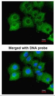 Immunofluorescence of paraformaldehyde-fixed A549, using GAPDH antibody at 1:200 dilution.