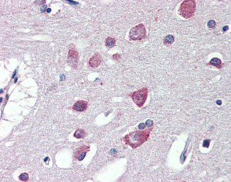 Anti-Fatty Acid Synthase antibody IHC of human brain, cortex. |