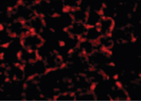Immunofluorescence of MTCH2 in Mouse Kidney cells with MTCH2 antibody at 20 ug/ml.