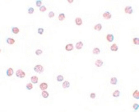 Immunocytochemistry of ATP11B in K562 cells with ATP11B antibody at 10 ug/ml.