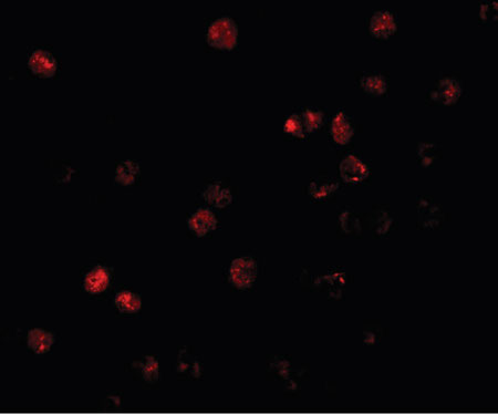 Immunofluorescence of ATP11B in K562 cells with ATP11B antibody at 20 ug/ml.