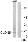 Western blot of extracts from A549 cells, using Claudin 5 Antibody. |