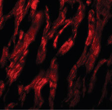 Immunofluorescence of ATG9A in human heart tissue with ATG9A antibody at 20 ug/ml.