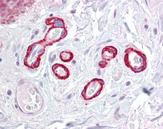 Anti-SLC39A14 antibody IHC of human colon, vessels.