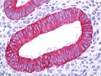 Anti-KRT18 / Cytokeratin 18 antibody IHC of human uterus, endometrium. |