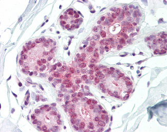 Anti-TP53 / p53 antibody IHC of human breast. |