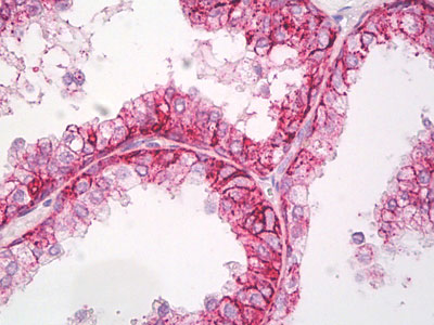 Anti-AQP3 / Aquaporin 3 antibody IHC of human prostate. |
