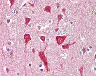 Anti-JM4 / PRAF2 antibody IHC of human brain, cortex. |