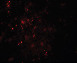 Immunofluorescence of POU3F2 in human brain tissue with POU3F2 antibody at 20 ug/ml.