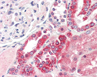 Anti-TYK2 antibody IHC staining of human kidney. |