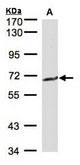 Sample (30 ug of whole cell lysate). A: MOLT4. 7.5% SDS PAGE. GGT1 / GGT antibody diluted at 1:500