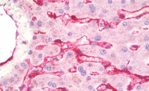 Anti-CAV1 / Caveolin 1 antibody IHC staining of human liver.