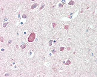 Anti-PTGDS / PGDS antibody IHC staining of human brain, cortex. |