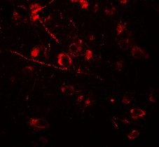 Immunofluorescence of AMIGO1 in human brain tissue with AMIGO1 antibody at 20 g/mL. |
