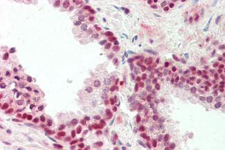 Anti-ZNF461 antibody IHC staining of human prostate.