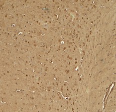 Immunohistochemistry of KCNK1 in mouse brain tissue with KCNK1 antibody at 5 ug/ml.