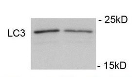 Autophagy is an alternative process of proteasomal degradation for some long-lived proteins or organelles. Alterations in the autophagic-lysosomal compartment have been linked to neuronal death in many neurodegenerative disorders as well as in transmissible neuronal pathologies (prion diseases). Genetic studies in yeast have shown that Autophagy-defective Gene-8 (Atg-8) represents a specific marker for autophagy. Among the four families of mammalian Atg8-related proteins only LC3 (Microtubule-associated Protein1 Light Chain 3) is expressed at sufficient high levels and efficiently recruited to autophagic vesicles in cells and tissues. During autophagy the cytoplasmic form, LC3-I is processed and recruited to autophagosomes, where LC3-II is generated by site specific proteolysis near to the C-terminus. Autophagic vacuoles have been also reported frequently in cardiomyopathies or muscle cells exposed to different experimental settings.