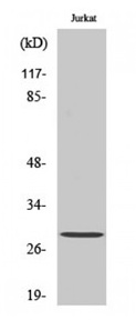 Western blot analysis of Jurkat cells using Phospho-Bcl-2(Thr56) Polyclonal antibody. |