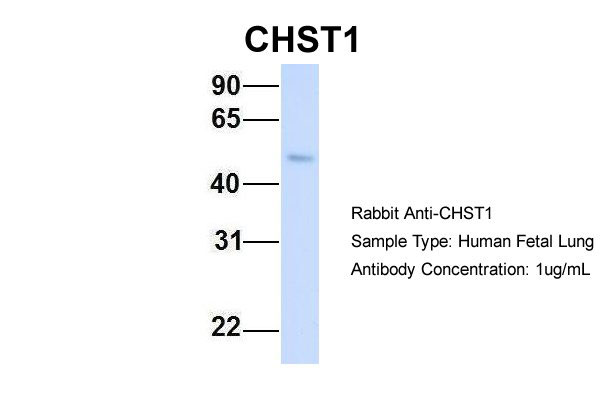 Host:Rabbit Target Name:CHST1 Sample Tissue:Human Fetal Lung Antibody Dilution: 1.0μg/ml |