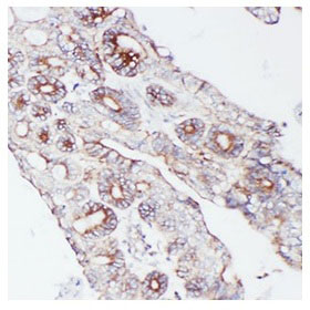 IHC (P) with PCSK9 Antibody: Human Intestinal Cancer Tissue. Antigen retrieval was done by boiling the paraffin sections in 10 mM citrate buffer, pH 6.0, for 20 mins.