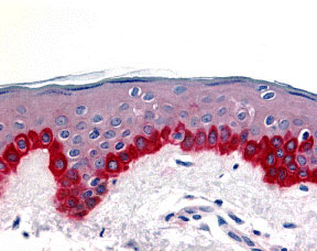 Immunohistochemistry of Apaf1 in human skin tissue with Apaf1 antibody at 20 μg/mL. |
