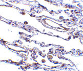 Immunohistochemistry of CIKS in human lung tissue with CIKS antibody at 5 μg/mL.