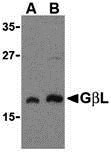 GBL Antibody: GbetaL (G protein beta protein subunit-like) is a member of a signaling pathway that regulates mammalian cell growth in response to the presence of nutrients and growth factors. It binds to the kinase domain of TOR (Target of rapamycin, also known as mTOR), an evolutionarily conserved serine/threonine kinase that regulates cell growth and cell cycle through its ability to integrate signals from nutrient levels and growth factors. Rapamycin inhibits TOR resulting in reduced cell growth and reduced rates of cell cycle and cell proliferation. TOR is normally associated with GbetaL and an additional regulatory protein RAPTOR, allowing TOR to control protein biosynthesis. The binding of GbetaL to TOR stimulates TOR's kinase activity towards downstream proteins such as RPS6K (ribosomal protein S6 kinase) and the translation factor 4E-BP1 which leads to increased protein translation and cell growth.