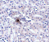 Immunohistochemistry of ZIP11 in mouse kidney tissue with ZIP11 antibody at 2.5 μg/mL. |