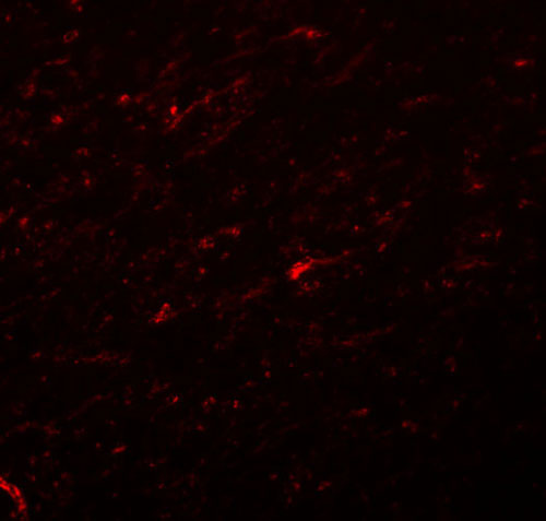 Immunofluorescence of TCF3 in rat brain tissue with TCF3 antibody at 20 μg/mL. |
