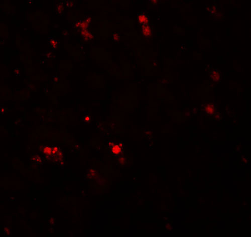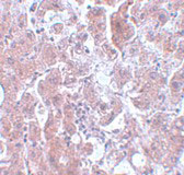 Immunofluorescence of ELOVL7 in human liver tissue with ELOVL7 antibody at 20 μg/mL. |