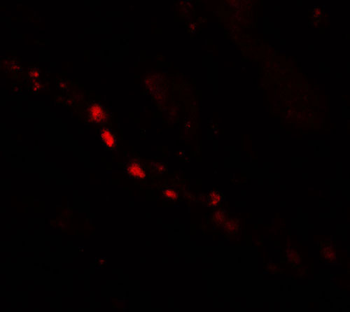 Immunofluorescence of PTCHD2 in human kidney tissue with PTCHD2 antibody at 20 μg/mL. |